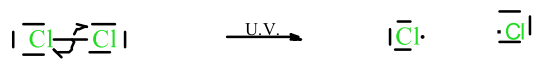Par exemples la chloration du méthane ou du la bromation du benzène.