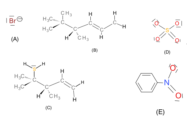 Donnez la formule de Lewis de ces substances ci-dessous. Lesquelles sont nucléophiles ? Lesquelles sont des électrophiles ?