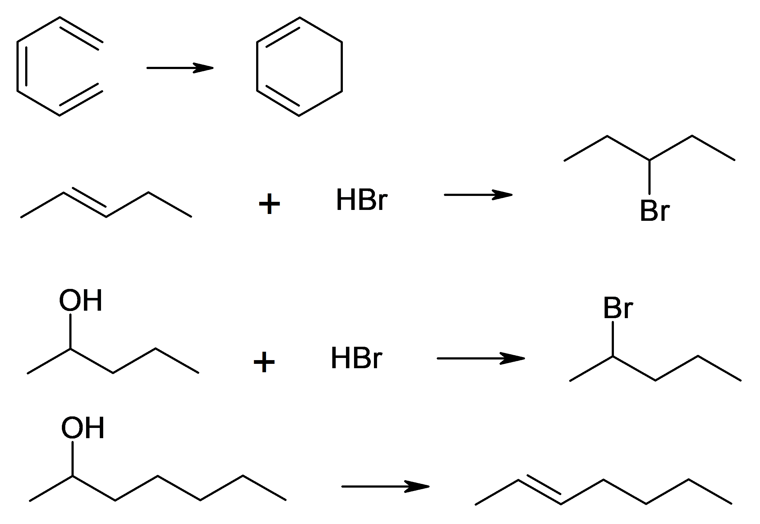 Indiquez pour chacune des réactions suivantes s’il s’agit d’une réaction de substitution, d’addition, d’élimination ou de réarrangement.