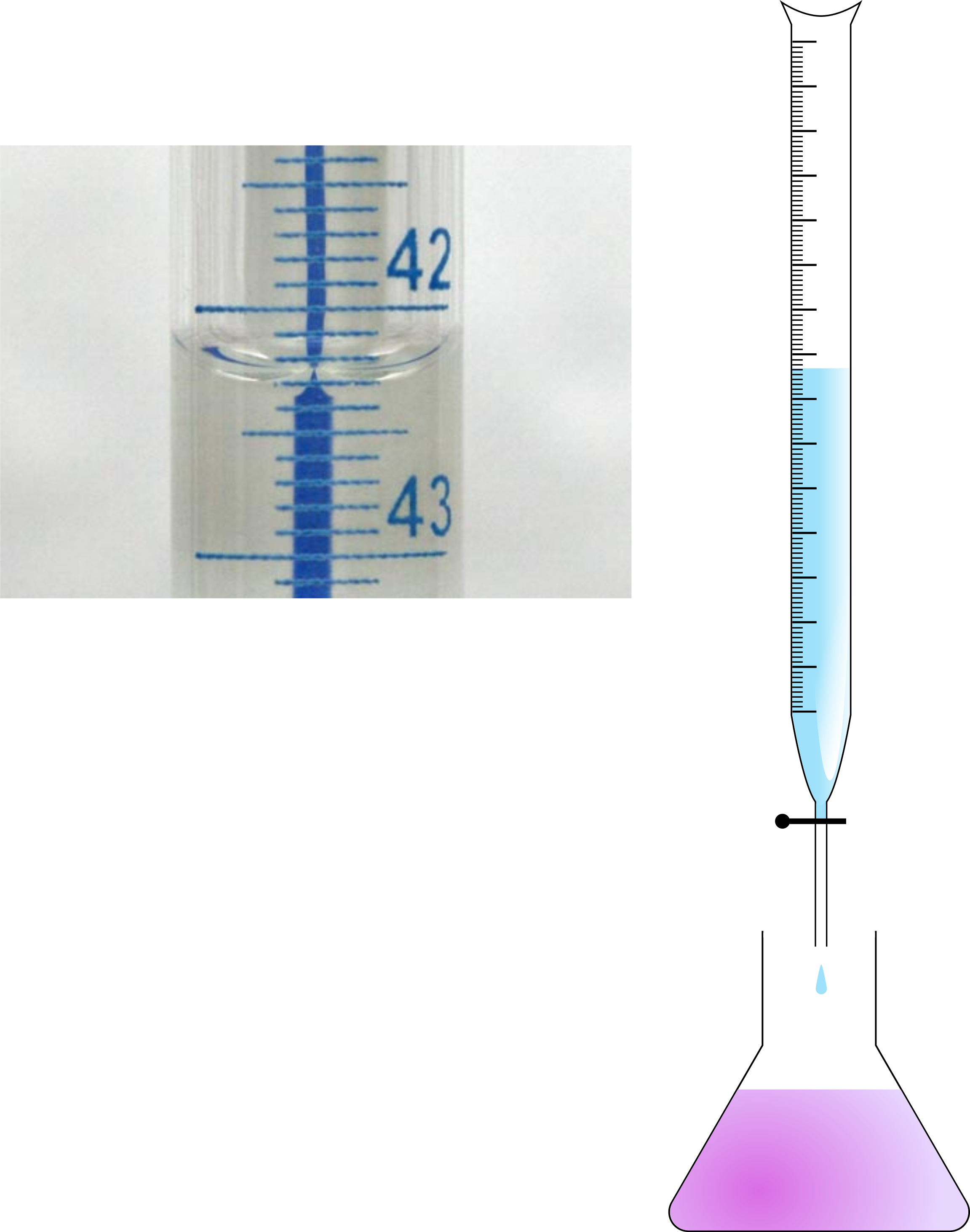 L'appareillage pour titrer une solution de concentration inconnue. Quel volume est-il indiqué sur l'image de gauche ?