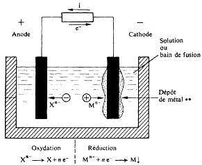 Illustration d'une électrolyse : le revêtement métallique d’un support.