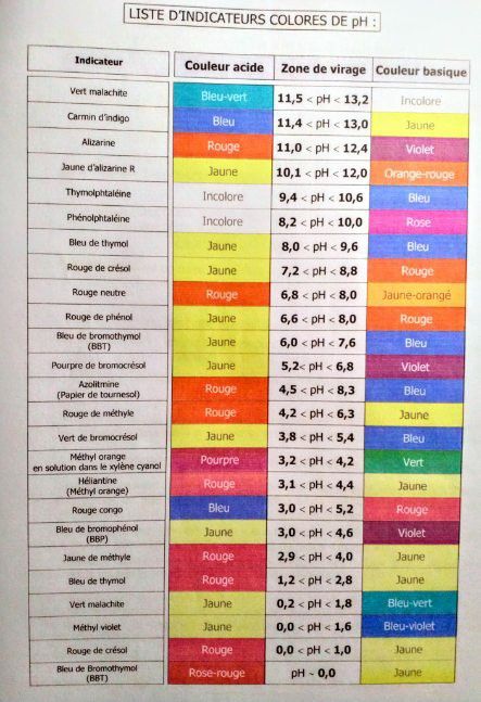 Une liste des indicateurs acide/base les plus courants.